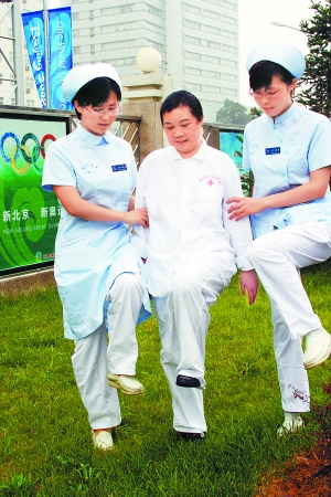 5月26日,李明翠老人躺在担架上被抬进解放军306医院,两个月后,老人已经可以自己行走,天天在医院里散步,生活可以自理。