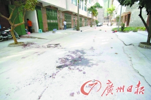 案发现场仍留有一摊血迹。