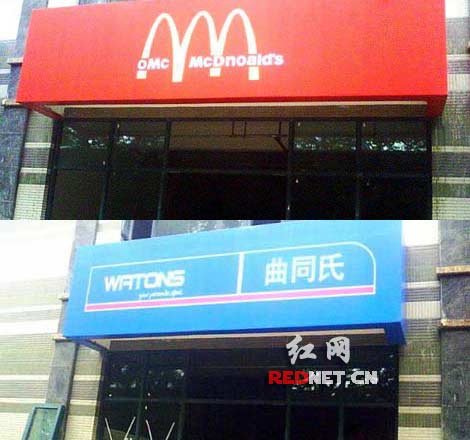 山寨版的麦当劳和屈臣氏店铺。网友 摄