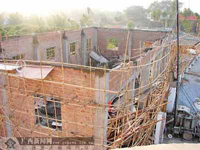 发生坍塌的楼房位于陆川县良田收费站附近,是良田公路养护所的一栋在建机械仓库。该楼房占地面积有250平方米左右,高7米,只有一层,公路养护所打算建成后,用来存放养护公路的车辆、工具等。发生事故前,该楼房已快竣工,正准备封顶收尾。