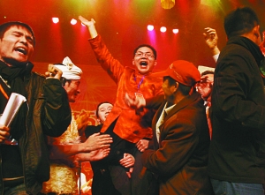 当汶川地震灾民表演的歌曲和舞蹈时,全场观众起立致敬。“他们经历灾难,但很坚强”。河南籍工人小张说,晚会节目贴近百姓,也很精彩。