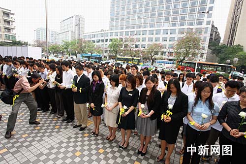 中新网广州5月12日电 (记者 莫非 通讯员 杨明钊 黄永威 刘慧仪)由广东多家新闻机构和安利(中国)公司主办的“5.12大地震周年影像展”,已经在广州市解放北路以太广场安利越秀店铺门前展出了5天,5月12日下午14时28分,上千名广州市民与安利志愿者自发来到周年影像展现场悼念地震受难同胞。