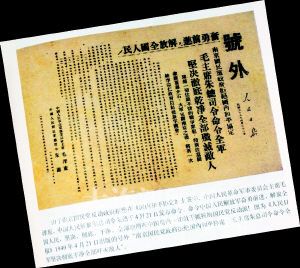 “这本书里我精选了其中的312张号外,其中有解放战争时期人民解放军解放30个省会城市和许多大、中城市时发行的报纸号外,以及‘三大战役’、渡江战役等号外。特别是10多张开国大典号外,见证了毛主席在天安门城楼上宣告‘中华人民共和国中央人民政府已于今日成立了’的伟大历史性时刻。”张挺自豪地说,书中收藏的大部分号外是首次面世,其中最珍贵的有两张:一张是1949年4月21日《人民日报》出版的号外“南京国民党政府拒绝国内和平协定毛主席朱总司令命令全军坚决彻底干净全部歼灭敌人”;另一张是1949年4月24日,解放军攻入太原,当日《人民日报》出版“南京反动政府宣告灭亡狼狈奔逃我正向南京急进各界已成立治安维持委员会致电毛主席欢迎解放军入城”的号外。