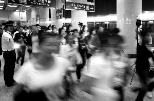 此时,4号线内的站务员还在奔跑,仔细寻找可能被遗漏的乘客。5分钟后,站台上空无一人。此时,站内又恢复了光明。(左林)