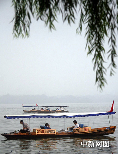 “坐船、坐船,来杭州不坐船可是要遗憾的!”尽管杭州阴雨绵绵,但在西湖断桥码头还是聚集了一大批兴致勃勃的中外游客,丁慧军全然不顾已经湿透的船工服,仍是卖力地吆喝着。热情的召唤声很快聚拢了一批游客,面对他们的讨价还价,丁慧军一指手划船说:“一个小时80元,明码标价,童叟无欺。”