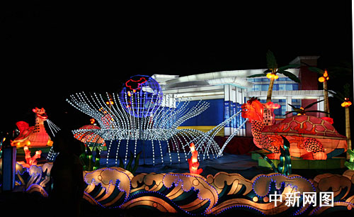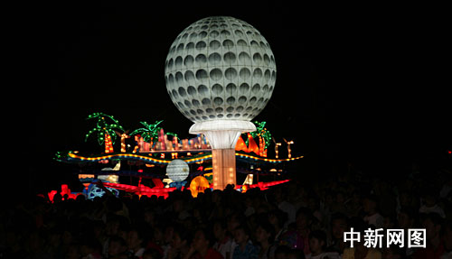 中新网海口10月1日电(付美斌)1日晚上8 时,海南海口市万绿园人潮涌动,灯火辉煌、流光溢彩,海南省庆祝新中国成立60周年大型主题彩灯展今晚正式亮灯开展。整个灯展设七大板块共60个灯组,展为期一个月。