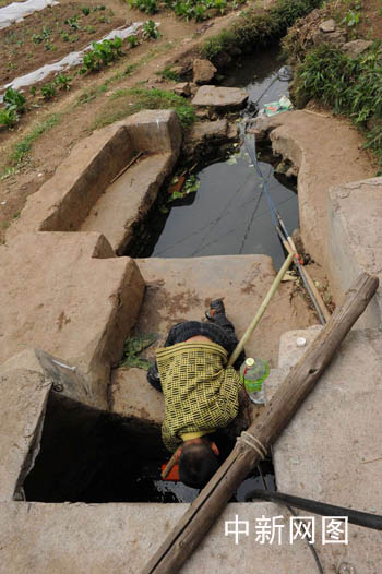 小刘凯告诉记者,受持续干旱缺水影响,他到村庄到远处取水已经有一周时间了。由于供村里食用的水源在慢慢减少,每天中午放学后,刘凯都要担着自己的“水桶”到远地“打水”,往返需要近半个多小时。据记者上前仔细察看,小刘凯取水之地作为村里为数不多的水源之一,浑浊的水面难以见底,水源质量令人担忧。