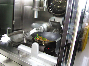 中国烹饪大师、扬州大学旅游烹饪学院烹饪系主任和淮扬菜非物质文化遗产传承人周晓燕教授,是烹饪机器人的主要研制者和主要菜肴设计师。他告诉记者,“客观地说,‘爱可2.0’的本领,已经超过了饭店里的普通厨师。”周晓燕介绍:“中国菜肴特别讲究‘火候’,机器人顶部安装了远红外线探头,能自动调节火候,控制温度,所以说,在火候的掌握上,机器人已经超过人了。”这还不算,凭借特定的系统软件,机器人的技法也炉火纯青,光一个“炒”就会煸炒、干炒、熘炒、滑炒等十多种技法,一般的厨师只能望尘莫及。