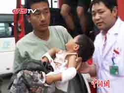 江西:两客车相撞 消防人员隔窗施救3岁男童