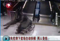轮椅失控滑下卖场自动扶梯 两人受伤