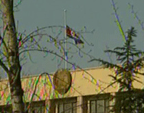 朝鲜驻华大使馆降半旗致哀 戒严肃穆