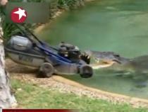 澳大利亚一鳄鱼攻击除草机 碰掉两颗牙齿