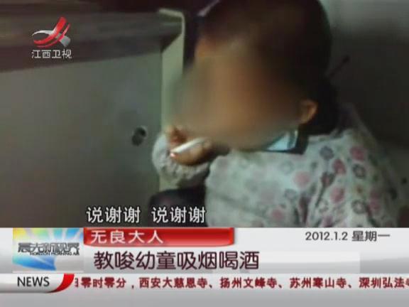 实拍几名男子教唆幼童吸烟喝酒