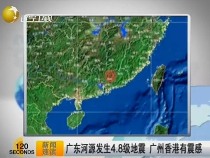 广东河源发生4.8级地震 广州香港有震感