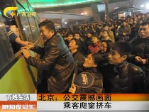 北京国贸附近公交画面震撼 乘客爬窗挤车