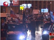普京支持者反对者驾私家车游行 表达各自诉求