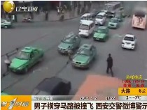 男子横穿马路被撞飞 西安交警微博警示