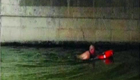 男子发现鸭子被冻湖面 跳湖破冰救援