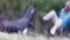 狗狗"拍马屁" 脑袋被踢晕