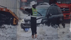 男子发现鸭子被冻湖面 跳湖破冰救援