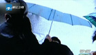 男子暴病倒地 陌生人雨中撑伞