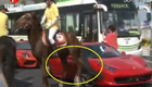 实拍“宝马”街头受惊怒踢法拉利