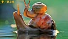 小蜗牛爬在“妈妈”背上过河