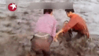 实拍:女子被洪水冲走 紧急援救