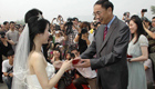 大学校长为14对大学毕业生证婚