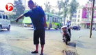 马路堆满淤泥 男子跌倒后守候提醒他人
