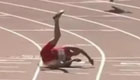 实拍选手百米途中骨折 膝盖扭曲