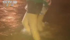 北京桥下积水深2.5米 救援人员捞车