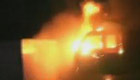 "海葵"来袭 电线被吹断起火烧毁路边汽车