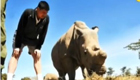 姚明与非洲犀牛亲密接触