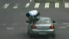 男子闯红灯被撞"空翻"站上车顶