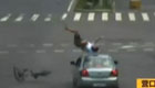 男子发现鸭子被冻湖面 跳湖破冰救援