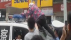 疯狂大妈为救小偷侄子爬上警车顶
