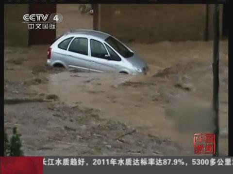 西班牙洪水冲毁街道 车辆“漂移”