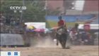 疯狂泰国赛牛节 骑水牛赛跑