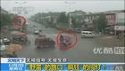 监控实拍面包车闯红灯将行驶电动车撞粉碎