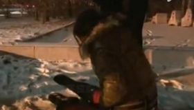 拍客:醉酒女子夜卧雪地