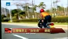 实拍男子飞驰摩托车上跳骑马舞
