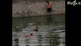 拍客:女子跳河轻生 路人入冰水施救