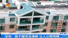 实拍孩子屋顶当滑梯嬉戏