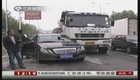 豪华奔驰超车撞上搅拌车 众人抬车疏通道路