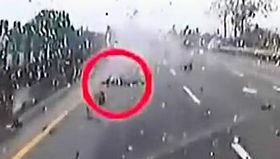 小车失控瞬间撞成碎片将司机甩出