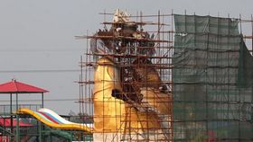 河南洛阳大背头“佛像”改建“九龙宝瓶”