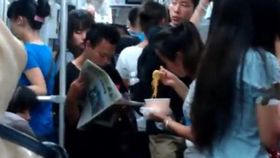 上海地铁现淡定“吃面女”
