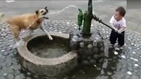 实拍:酷暑难耐狗狗钻进水桶来降温