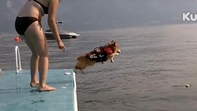 狗狗被人催着跳水了